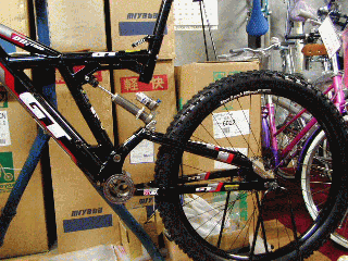 こんどはちゃんとユニットが付いた状態での全体の動きです。ホイール位置はロングホイールベース状態になっているので9インチ(でしたっけ?)です。また、ユニット取り付け部はヘッドアングルが立った位置で取り付けています。