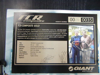 蛇足ですが、ナンバー001は台湾のジャイアント本社に、ナンバー007はジェームス・ボンドファンに行き先が決まっているそうです。