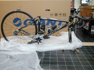 フレームはもちろん、ハンドルバー、ハンドルステム、エルゴパワー(ブレーキレバー部)、クランク、リム、ハブ、サドル、シートポスト、リアディレイラーの一部等々。とっても材料費の高いバイクです。もちろん軽さだけでなく性能は折り紙付きですし。