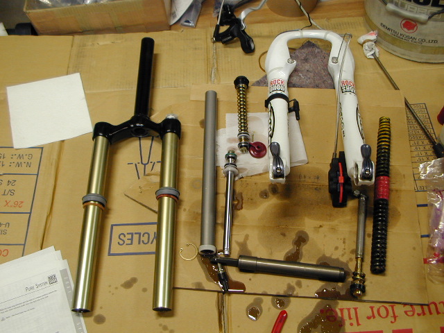 99JUDY100のオーバーホールを行った。オーナーのNSZW氏曰く、どノーマル状態であるがどうにも動きが硬いとのことである。たしかに後半ほとんど沈まない。これではJUDY50である。というわけで早速バラしました。既に2シーズン目、その間一回もオーバーホール無しというのは