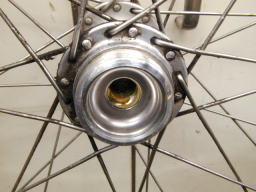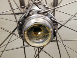 そして下の写真がクリーニング後の写真です。小さな写真でわかりづらいかもしれませんが、ハブ、玉押し、ベアリング共に異常は見られずとてもきれいになりました。